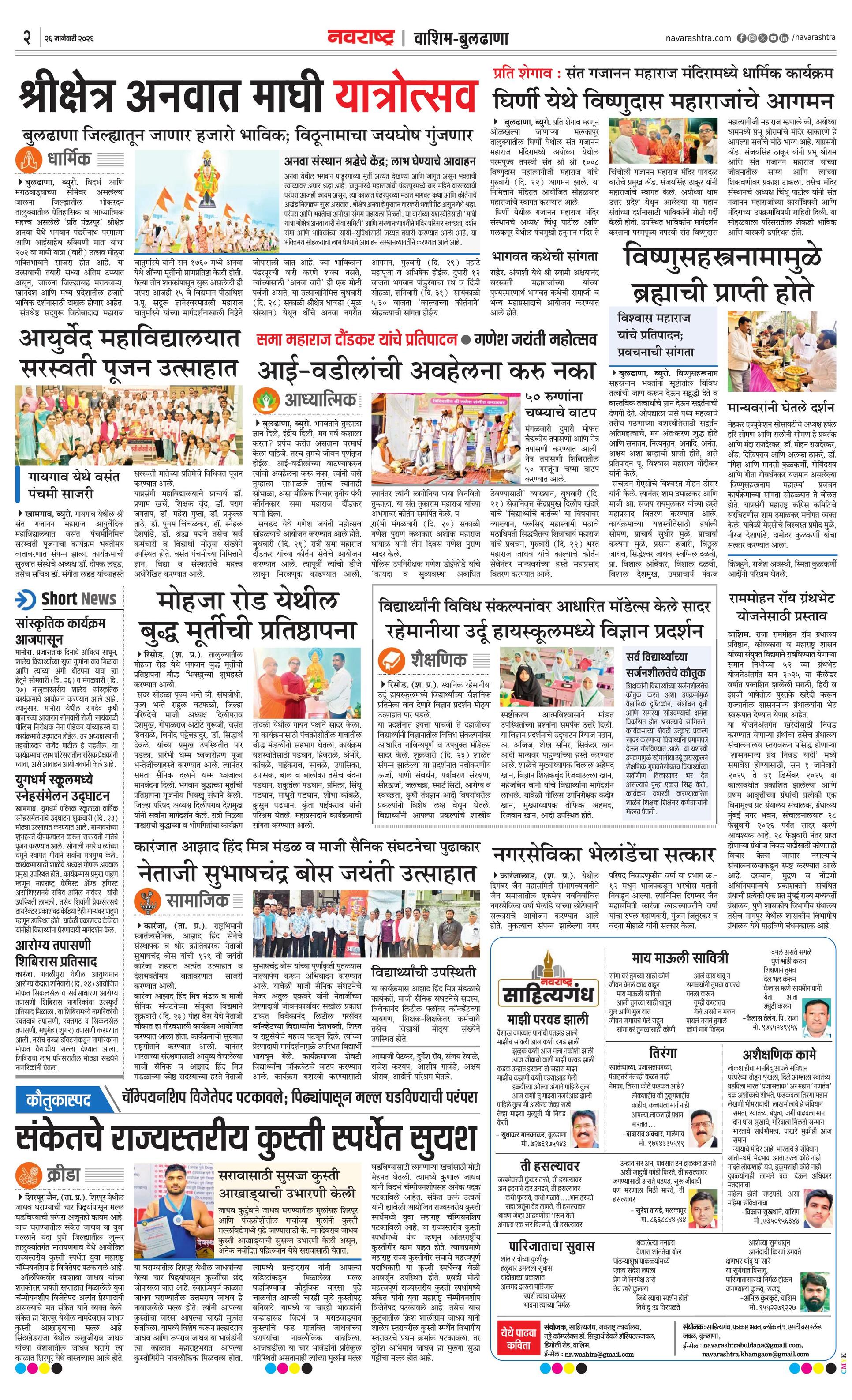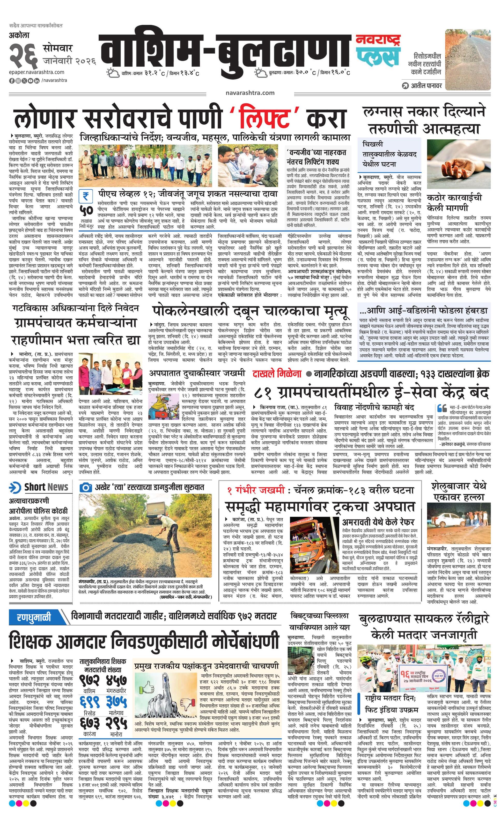 Washimbuldhanaplus E-paper | 2026-01-26 | Page 1 | Navarashtra