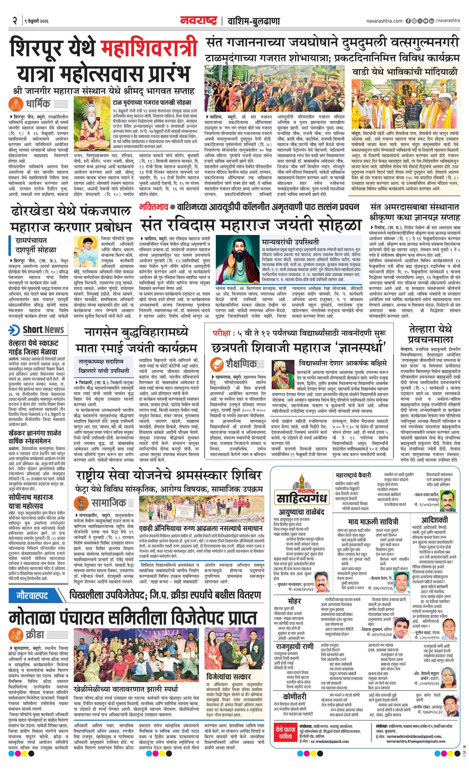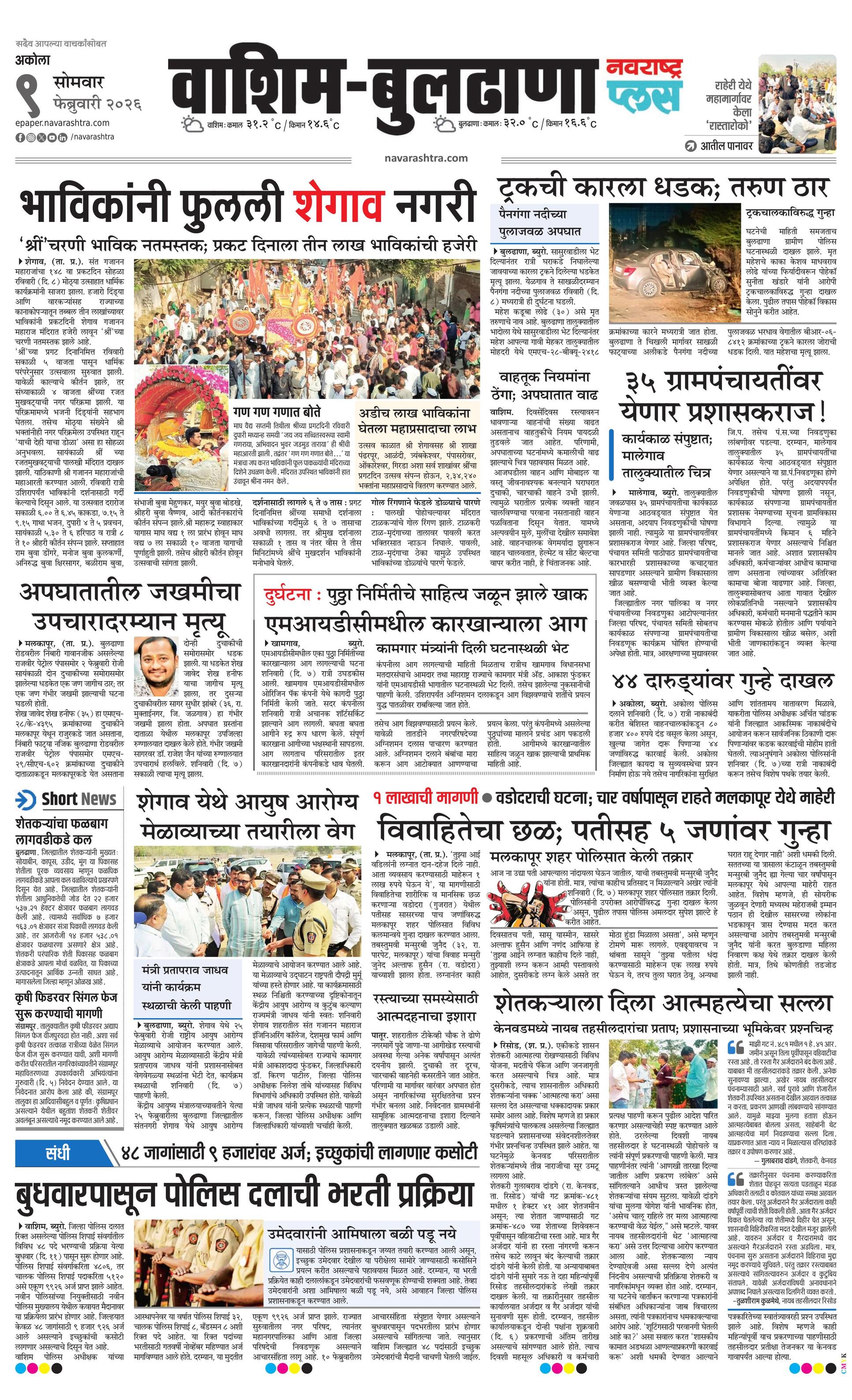 Washimbuldhanaplus E-paper | 2026-02-09 | Page 1 | Navarashtra