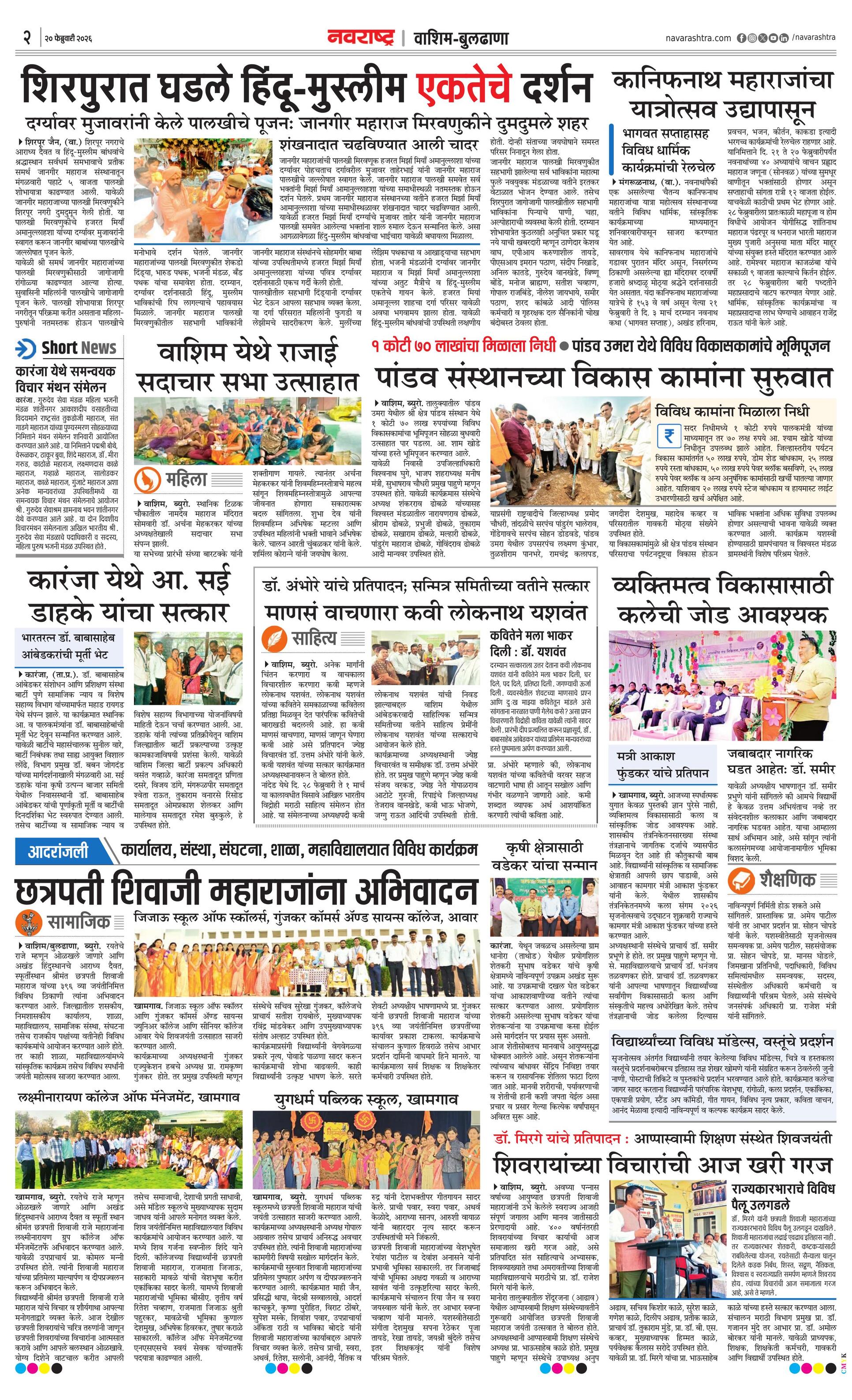 Washimbuldhanaplus E-paper | 2026-02-20 | Page 1 | Navarashtra