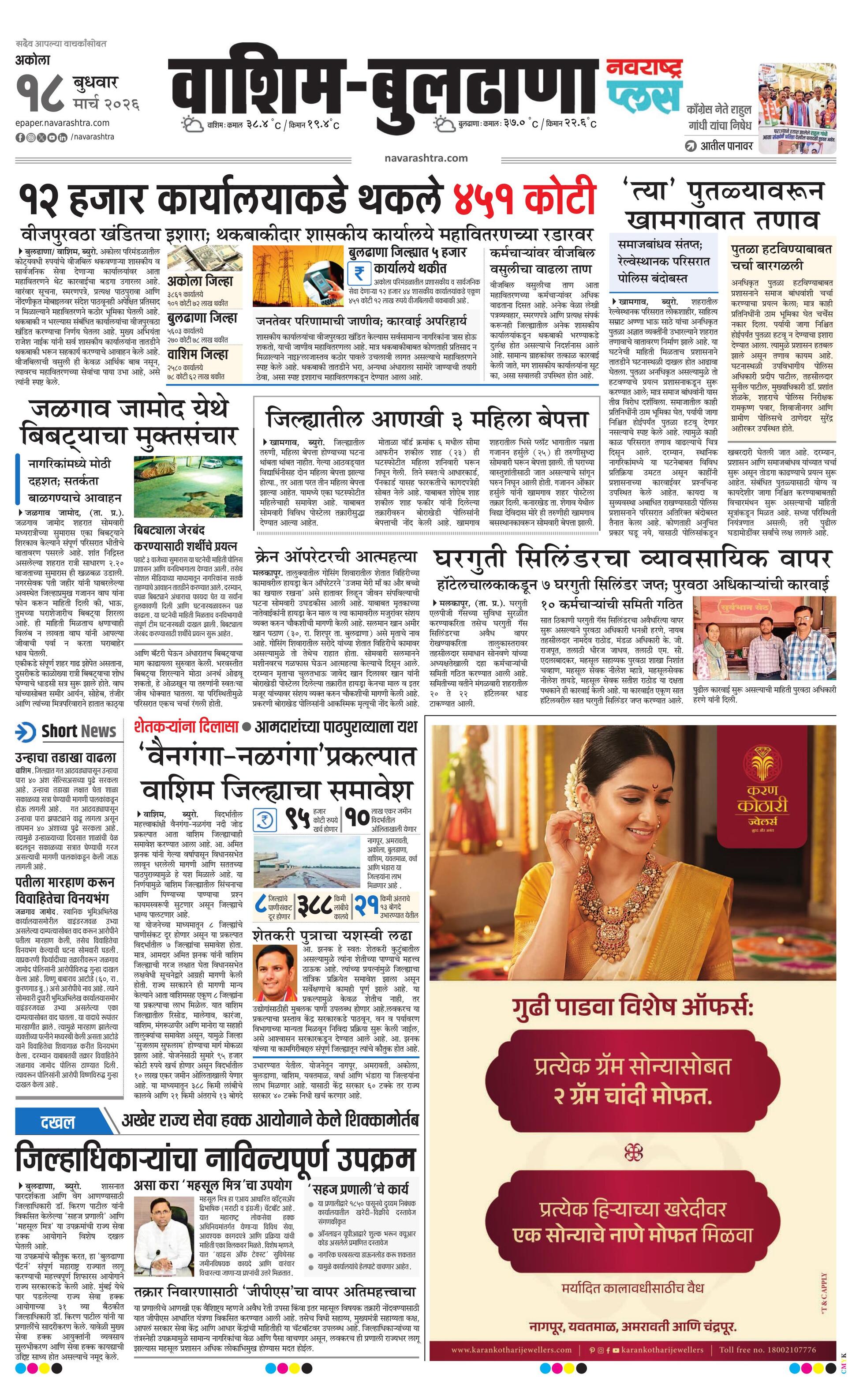 Washimbuldhanaplus E-paper | 2026-03-18 | Page 1 | Navarashtra