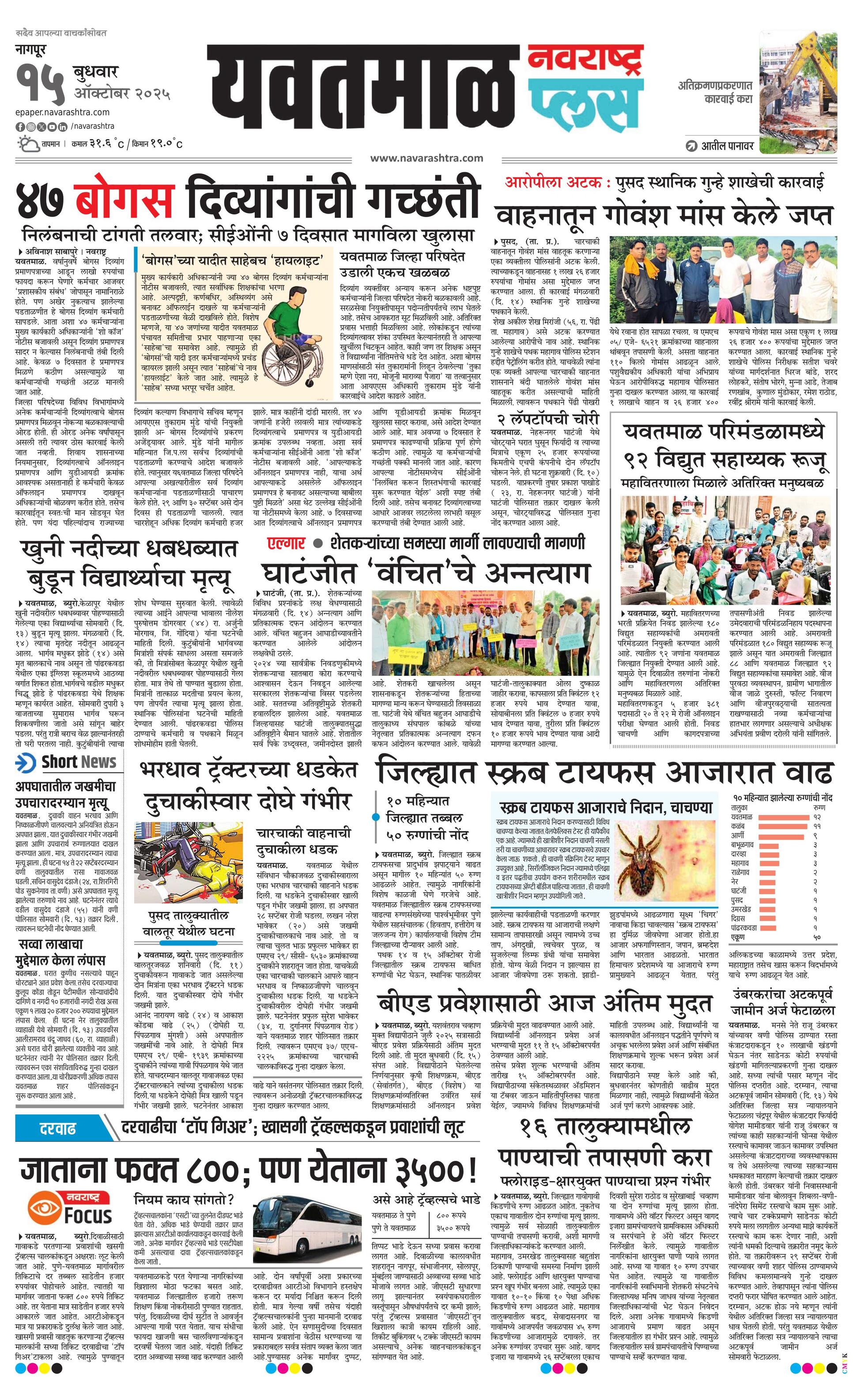 Yavatmalplus E-paper | 2025-10-15 | Page 1 | Navarashtra