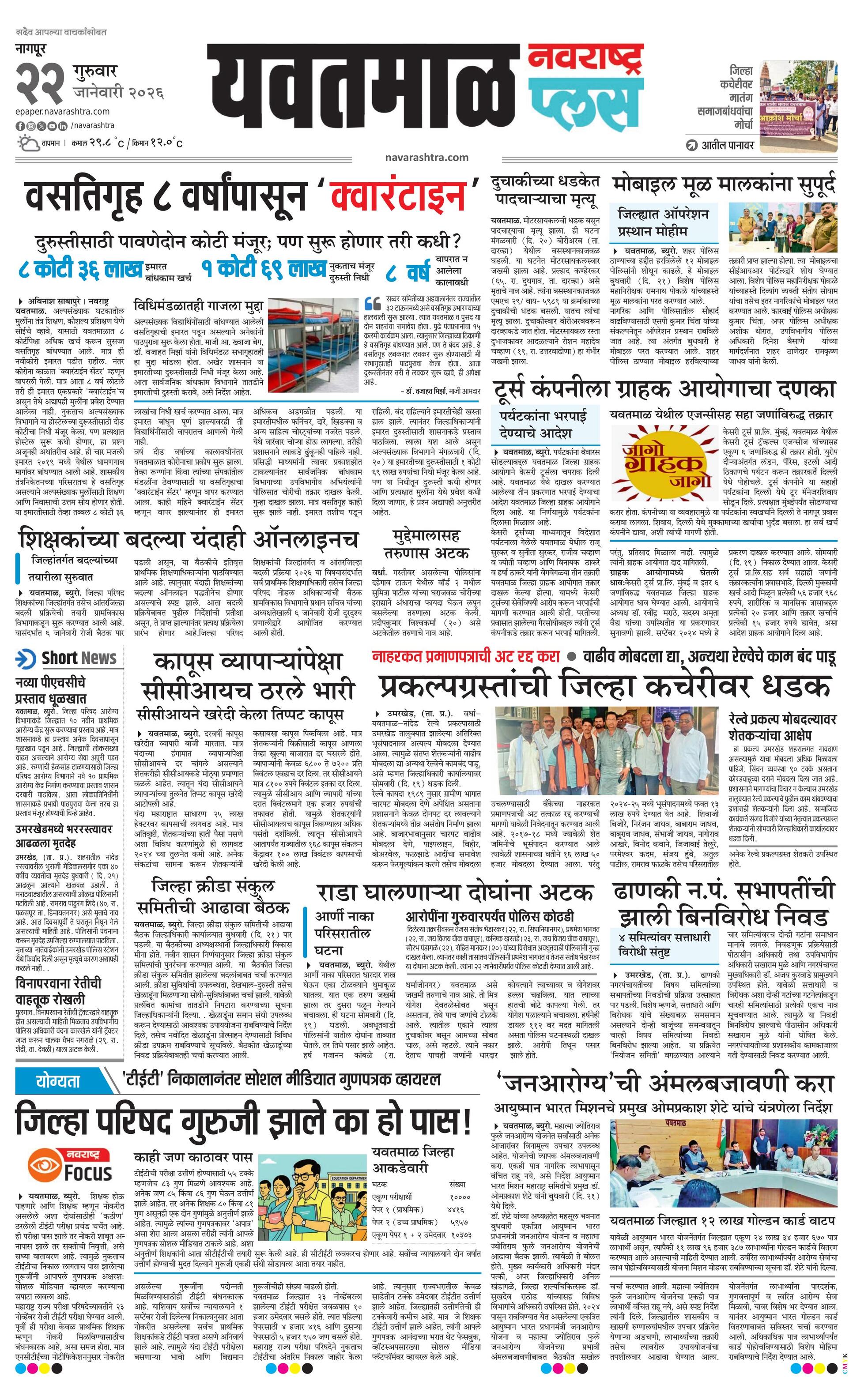Yavatmalplus E-paper | 2026-01-22 | Page 1 | Navarashtra